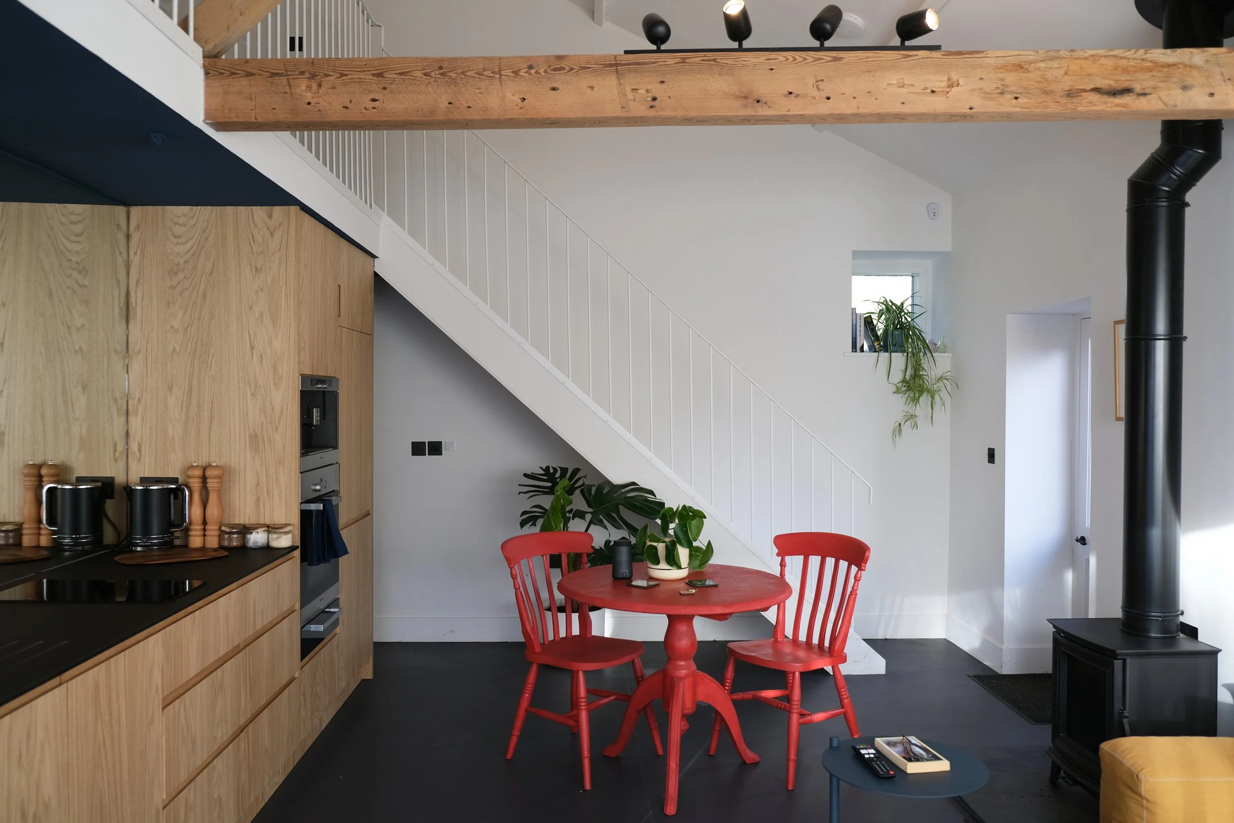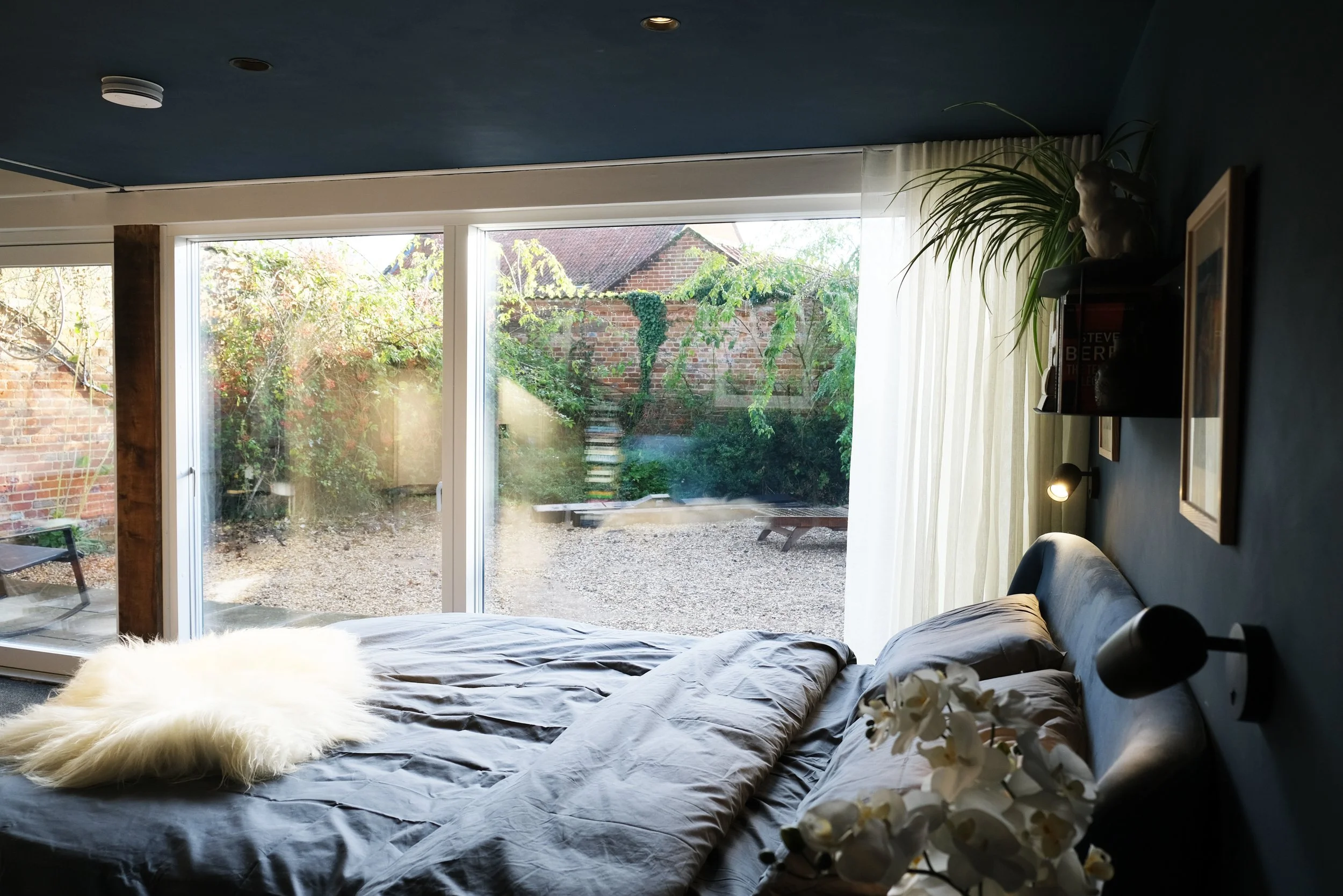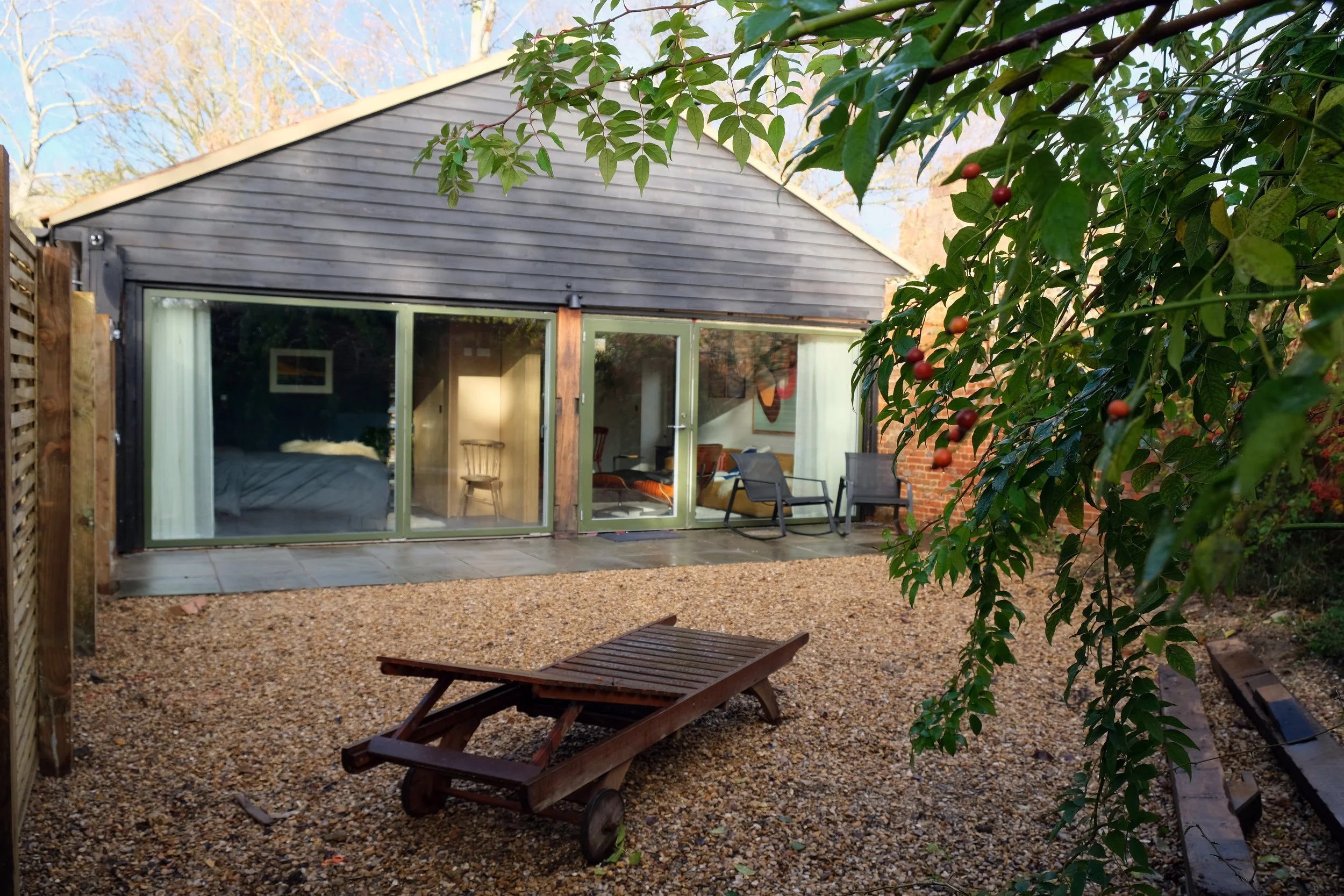 Conversion of an existing machinery shed into a 2 bedrooom holiday cottage. Using natural oak panelling to reference the surrounding landscape. A collection of artwork and books ensure a creative and restful escape with outlooks to 2 seperate private gardens including outdoor bath, and access to the Sparrow Green Farm estate from the rear terrace. Bookings via Cottages.com